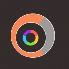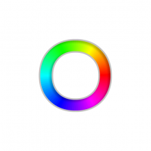 I added some drafts based on RexOr's inital design. First change is to replace the continous hue circle with one composed of 5 solid colors both in angle and in hue 72° apart (360/5 = 72). The colors of the hue circle have been desaturated to give a more modern look.