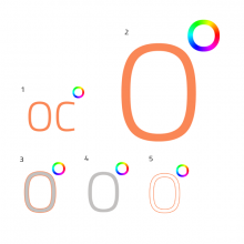 The following positioning allows for the colour wheel to sit precisely above the spine of the letter P when OpenCine is written fully.
